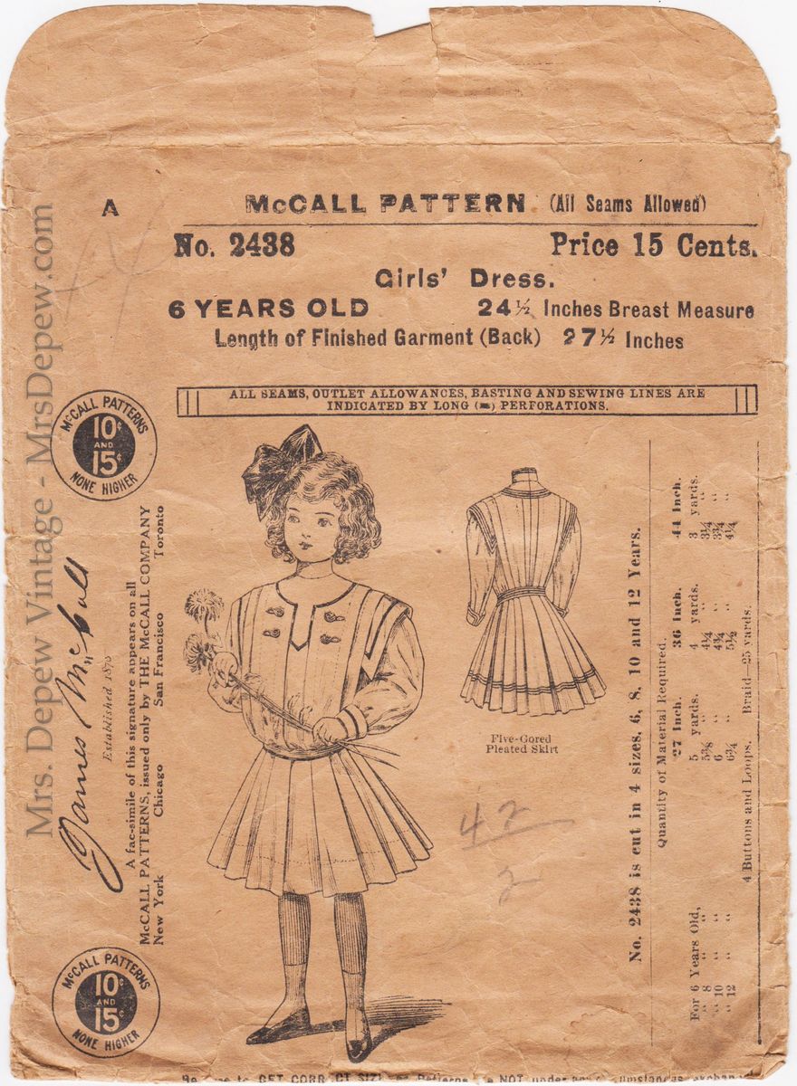 Incredibly Rare Original 1900s Mccall 2438 Girl S Dress Sewing Pattern 1909