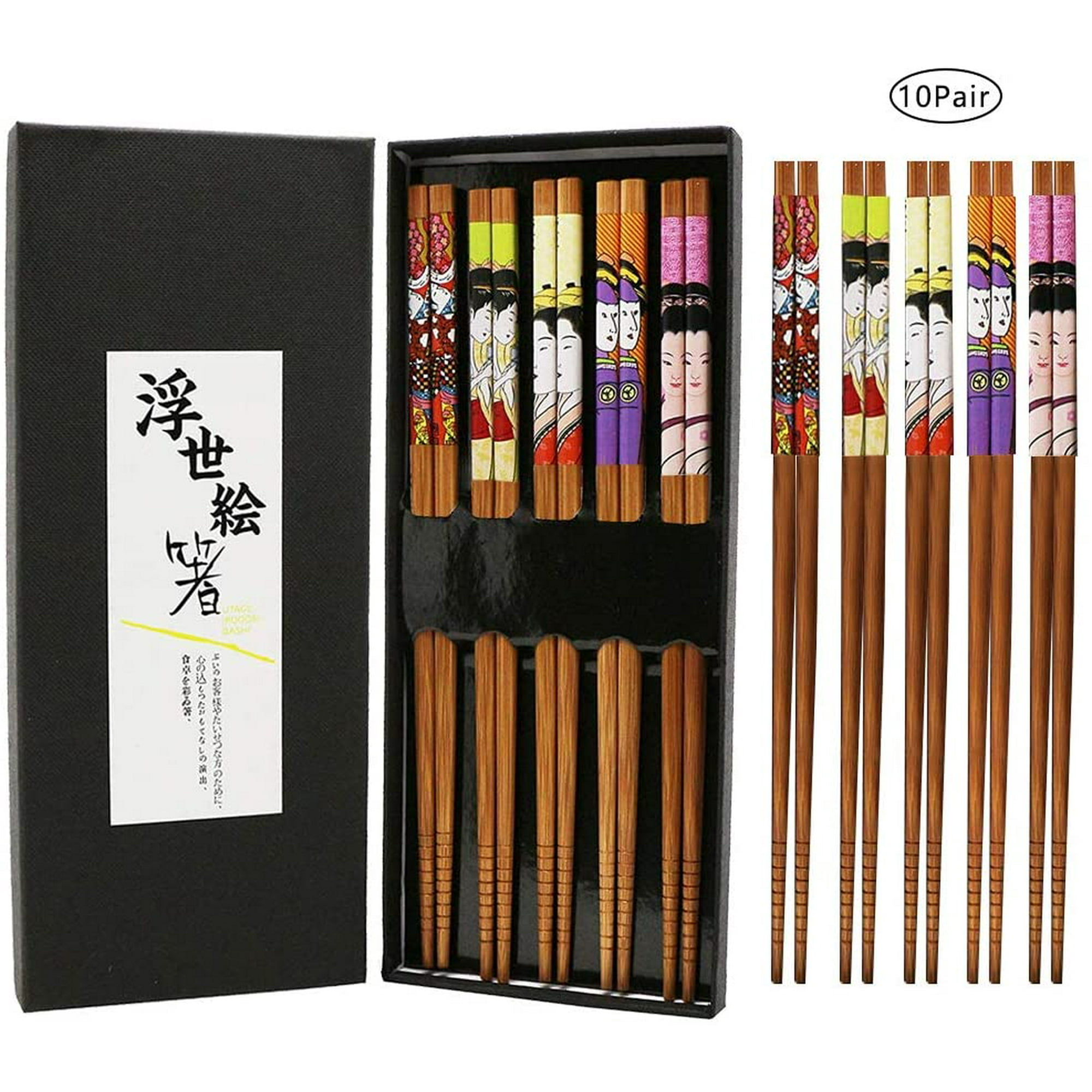 Bamboo Chopsticks Reusable Japanese Chinese Wood Chop Sticks Hair Sticks 5 Pair Gift Set Dishwasher Safe 9 Inch 1 Geisha Japan Bargain Inc